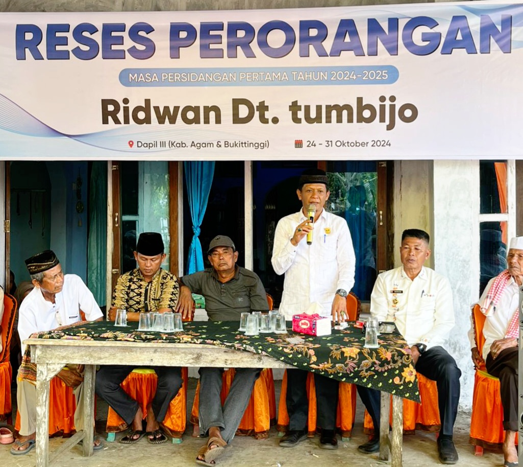 Hal tersebut disampaikan Anggota DPRD Provinsi Sumatera Barat Ridwan Dt. Tumbijo di Jorong Labuhan Kenagarian Tiku Limo Jorong Kecamatan Tanjung Mutiara Kab. Agam, Jumat, (25/10/2024).