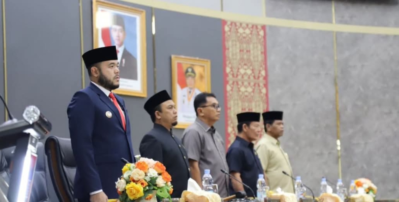 “Alhamdulillah, setelah kami cek absensi kehadiran, sesuai mekanisme dan tata tertib, rapat paripurna ini dapat kita mulai,” ujar Muharlion saat membuka sidang.
