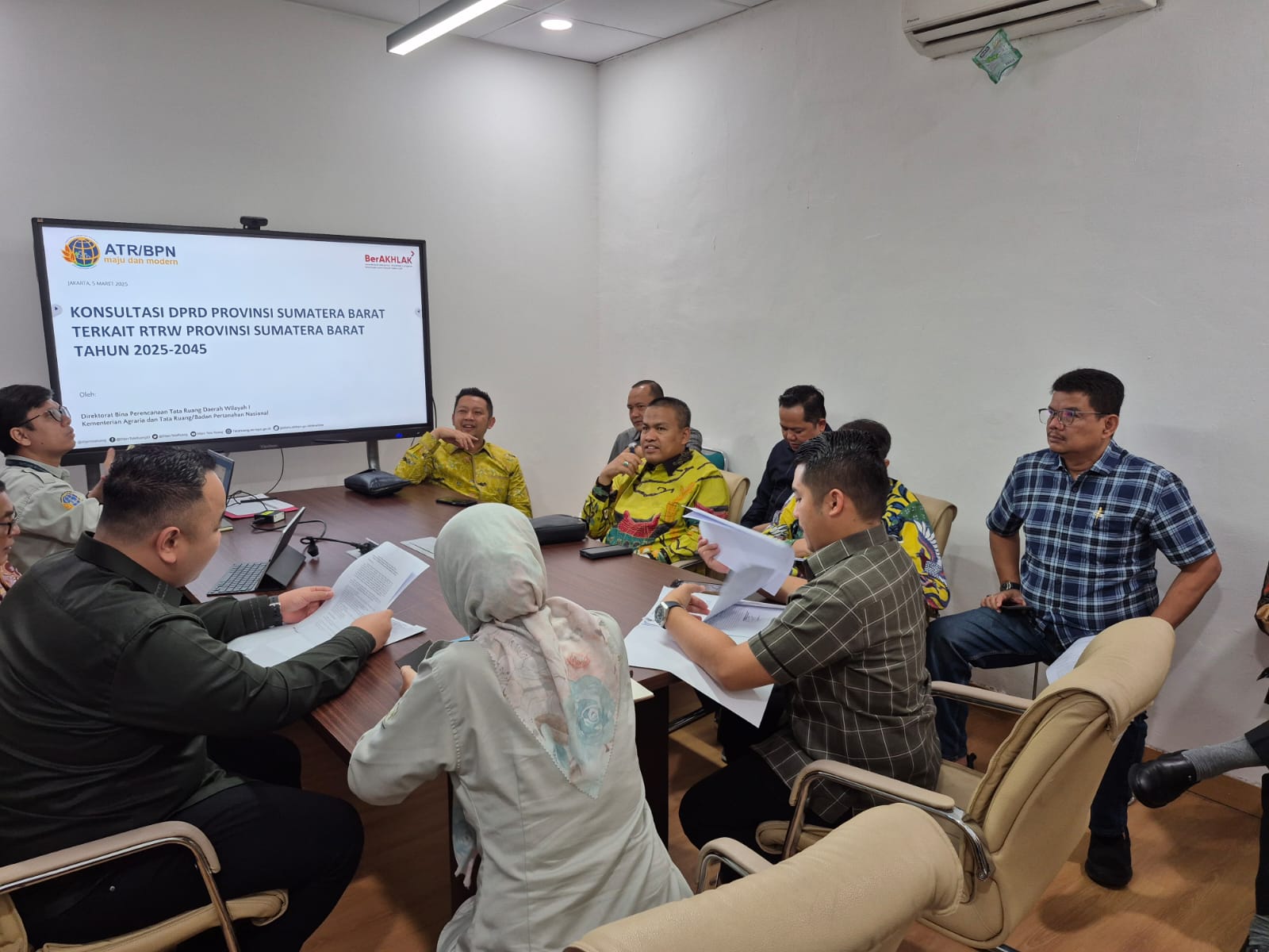 Padang, RANAHNEWS – Pimpinan DPRD Sumatera Barat (Sumbar) bersama anggota Panitia Khusus (Pansus) Rancangan Peraturan Daerah (Ranperda) Rencana Tata Ruang Wilayah (RTRW) menggelar konsultasi dengan Kementerian Agraria dan Tata Ruang/Badan Pertanahan Nasional (ATR/BPN) pada Jumat (5/3/2025). Pertemuan ini bertujuan untuk menyelaraskan RTRW Sumbar 2025-2045 dengan kebijakan nasional guna memastikan pembangunan yang berkelanjutan.