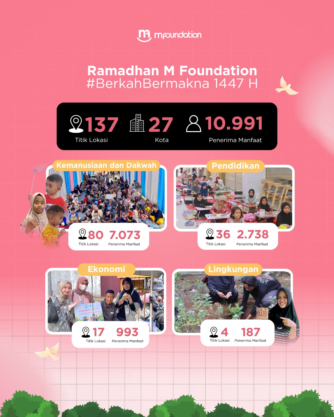 “Ramadhan bukan hanya tentang ibadah personal, tetapi juga bagaimana kita menghadirkan manfaat bagi sesama. Melalui #BerkahBermakna, kami ingin memastikan keberkahan Ramadhan dirasakan lebih luas oleh masyarakat,” ujar Direktur M Foundation.
