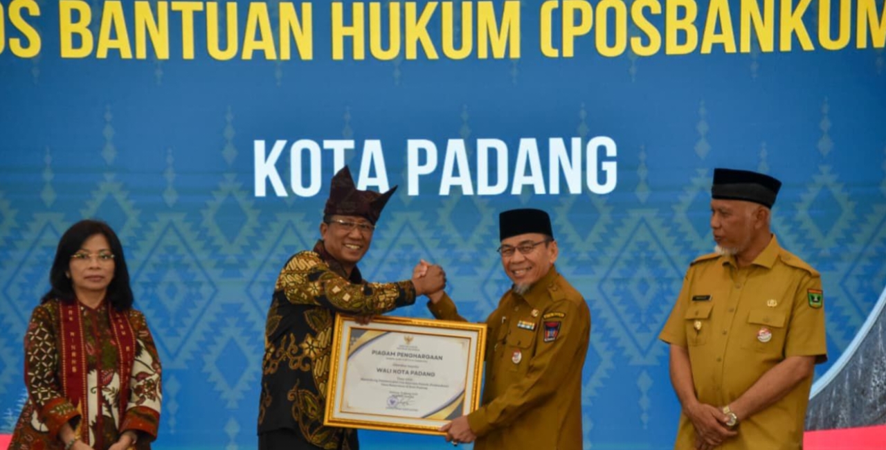 Padang, RANAHNEWS.com — Pemerintah Kota Padang menerima penghargaan dari Menteri Hukum RI Supratman Andi Agtas atas dukungan pembentukan Pos Bantuan Hukum (Posbankum), yang diserahkan dalam peresmian Posbankum nagari/desa/kelurahan se-Sumatera Barat di Auditorium Gubernur Sumbar, Senin (30/3/2026).