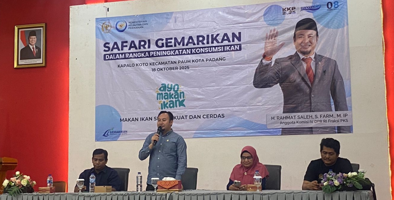 Padang, RANAHNEWS – Indonesia dikenal sebagai negara maritim dengan dua pertiga wilayahnya berupa lautan, namun tingkat konsumsi ikannya masih rendah. Kondisi inilah yang mendorong Anggota Komisi IV DPR RI dari Fraksi PKS, Rahmat Saleh, menggelar Safari Gerakan Memasyarakatkan Makan Ikan (Gemarikan) di Kota Padang, Sabtu (18/10/2025).