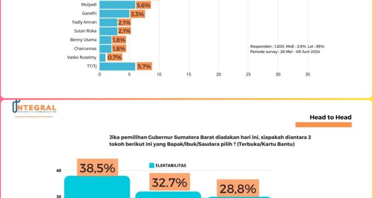 Survei Integral: Elektabilitas Mahyeldi Masih Tertinggi, Epyardi MendekatiPolitik|18 Juni 202418 Juni 2024oleh PRN