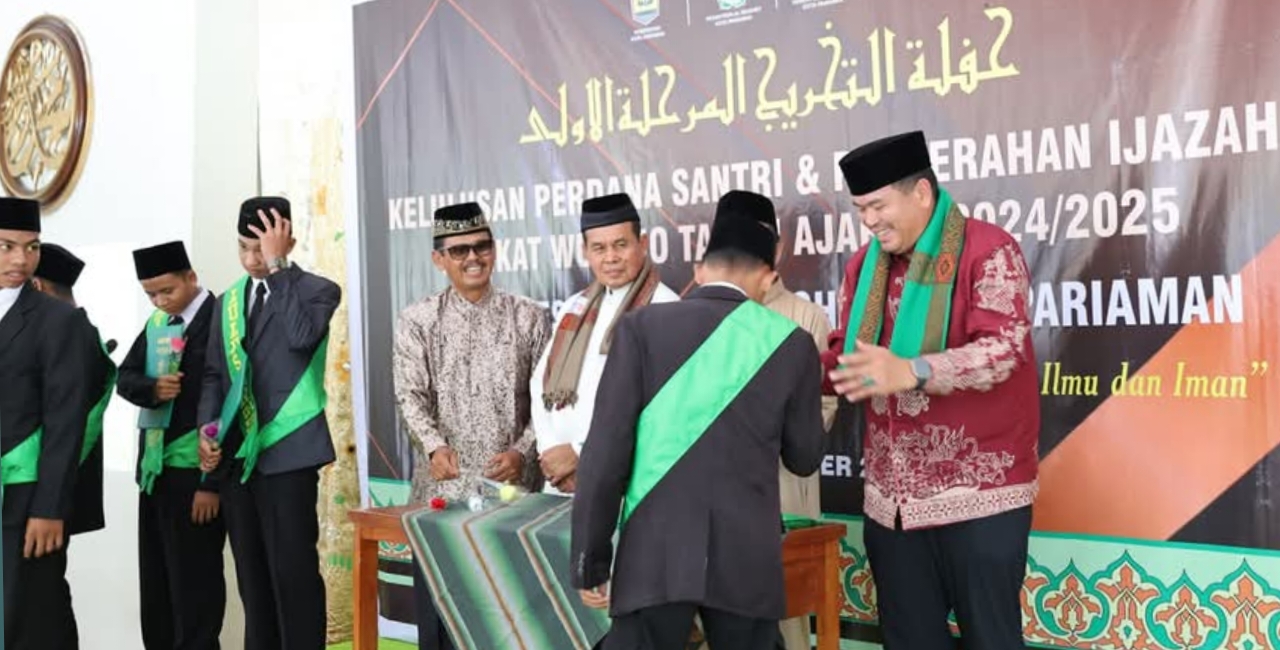 Pariaman, RANAHNEWS — Wali Kota Pariaman, Yota Balad, mengapresiasi kelulusan perdana santri Pondok Pesantren (Ponpes) Al-Mughny sebagai wujud keberhasilan lembaga tersebut dalam membina generasi muda yang berilmu dan berakhlak. Acara penyerahan ijazah tingkat Wustho tahun ajaran 2024/2025 itu digelar di Masjid Az-Zubaidah, Desa Pauh Barat, Kecamatan Pariaman Tengah, Kamis (9/10).